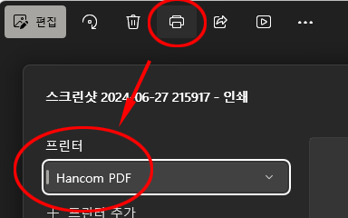 인쇄를 누르면 pdf 파일 만들기 바로 됩니다