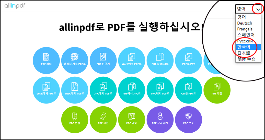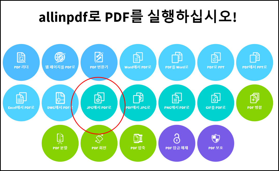 메뉴에서 jpg에서 pdf로 버튼을 찾아서
